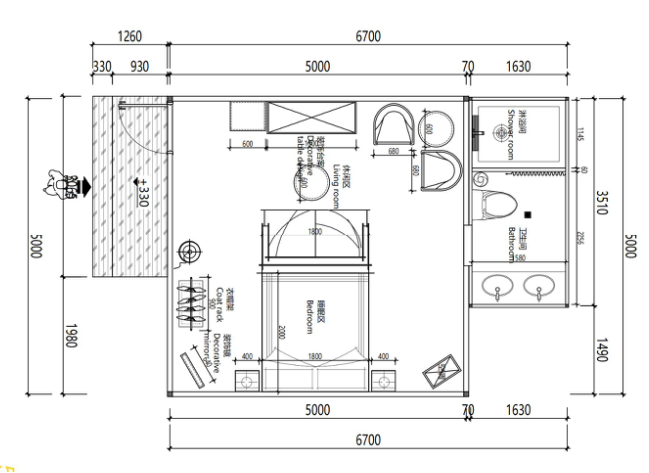 规格:5m*5m+1.5m*3.6m(卫浴)